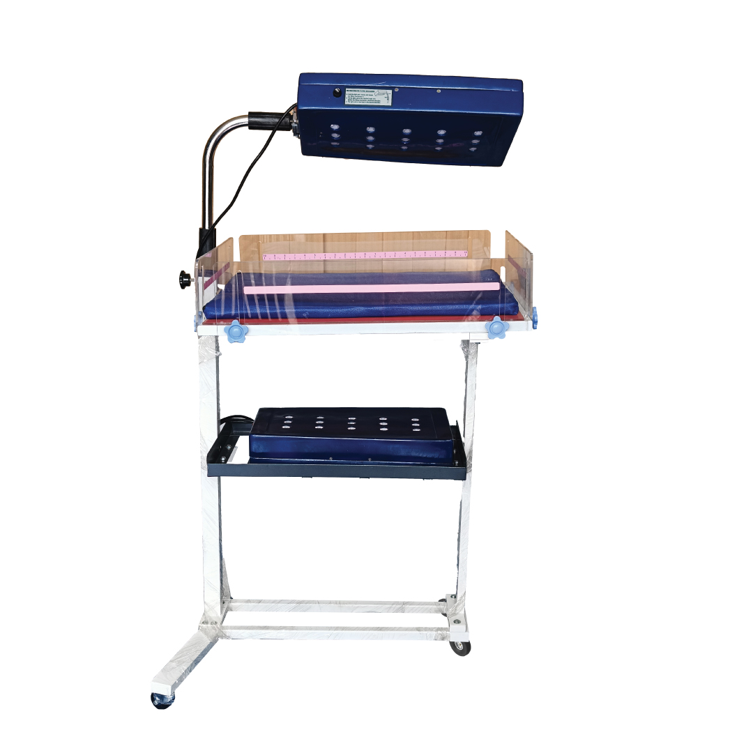 Equipped with four blue imported conventional tubes and two white tubes for examination, it offers precise control with separate switches for blue and white light. Height adjustable and featuring a light unit with tilt mechanism, it ensures optimal positioning for treatment. With high-quality electrical components and a power supply range of 180-290v/AC/50Hz, this unit provides reliable performance.